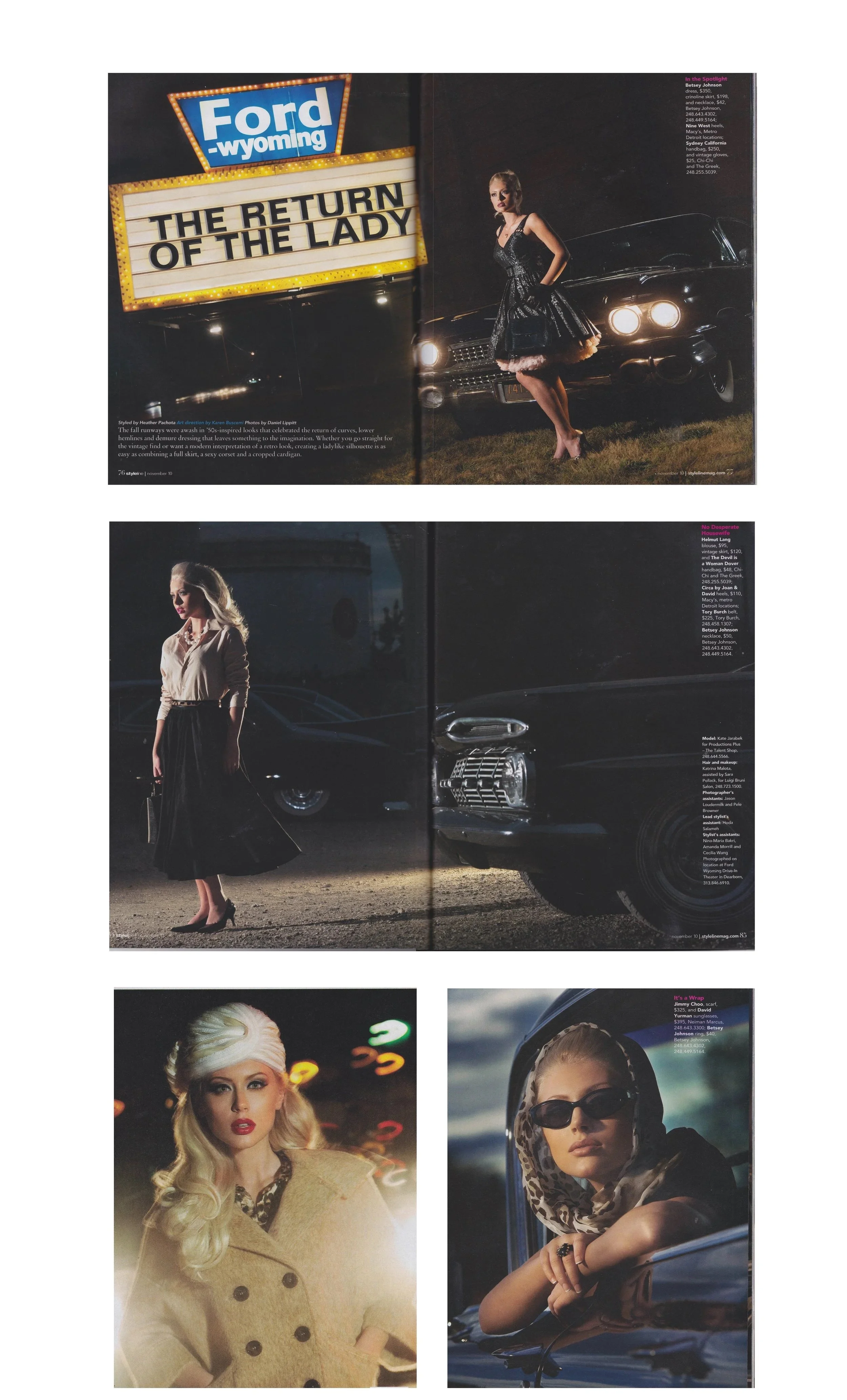 Not long after I started, Karen Buscemi, editor of Detroit’s StyleLine magazine, visited the store to source outfits for an upcoming photoshoot. Excited by the chance to get involved, I offered to help in any way I could. Soon after, I was invited to join the shoot as a styling assistant, ensuring the Betsey Johnson pieces were styled in true “Betsey” fashion— bold, fun, and unapologetically expressive.